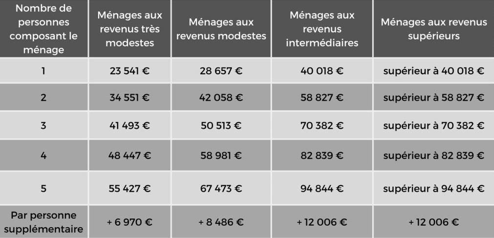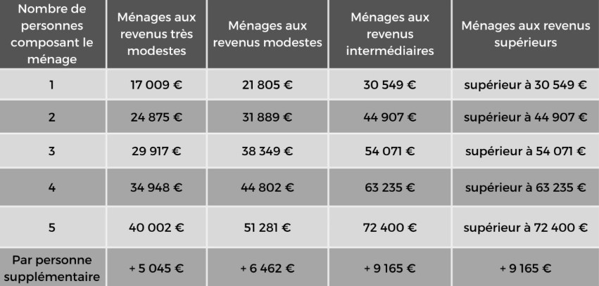 L’aide se calcule en fonction de vos revenus et des travaux engagés hors taxes. Concernant vos ressources, il existe 4 catégories. À titre d’exemple en Île-de-France.