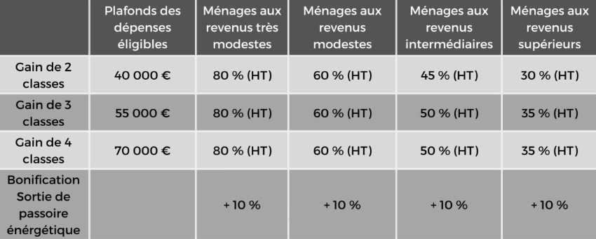 - ils doivent permettre de gagner au moins 2 classes énergétiques au logement (en passant par exemple de E à C) ;